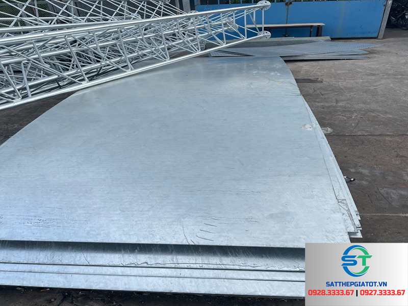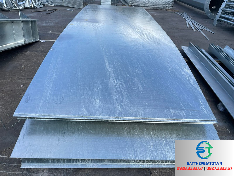Thép tấm mạ kẽm/mạ kẽm nhúng nóng: phù hợp công trình ngoài trời, môi trường ẩm ướt, tuổi thọ cao hơn.